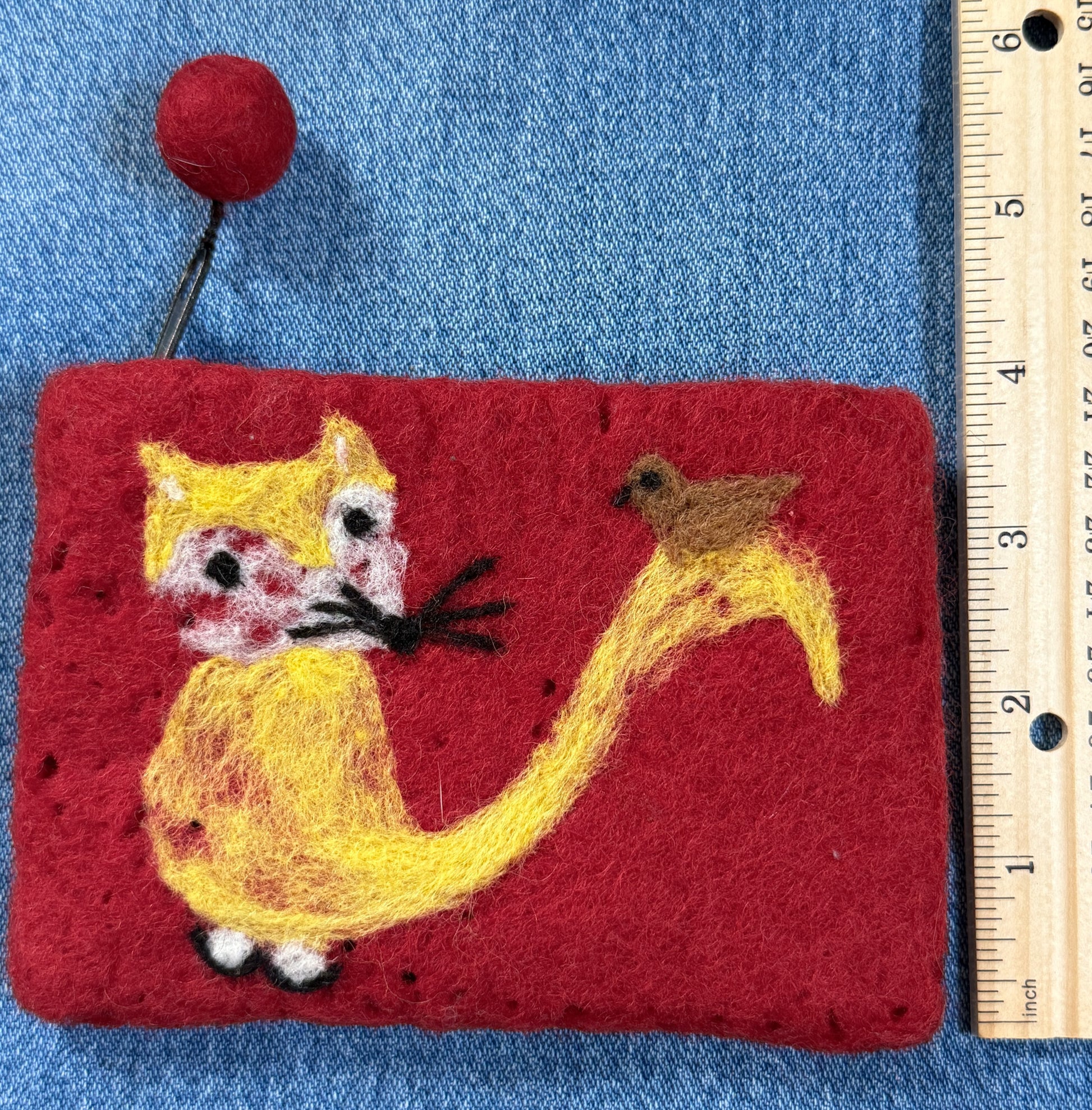 *Props not included - vintage felt coin purse, felted wallet, cat coin purse, red felt pouch, whimsical vintage, the.dee.que style, animal print pouch, vintage accessories