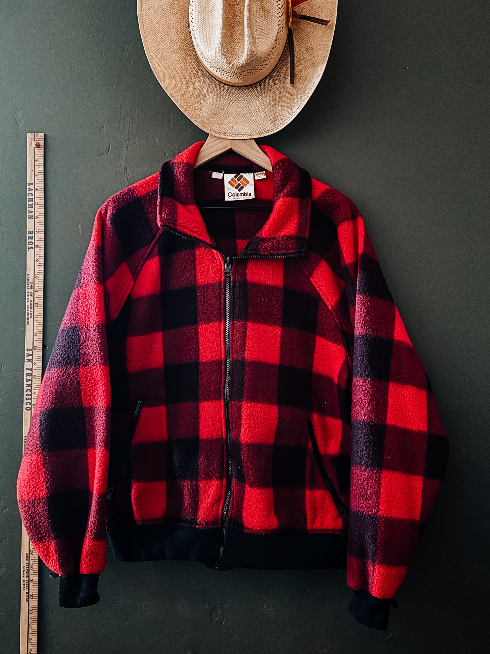 *Props not included -  vintage columbia jacket, buffalo plaid fleece, 90s columbia outerwear, vintage workwear, tomboy jacket, red black flannel fleece, outdoor vintage style, cozy vintage layering   Â