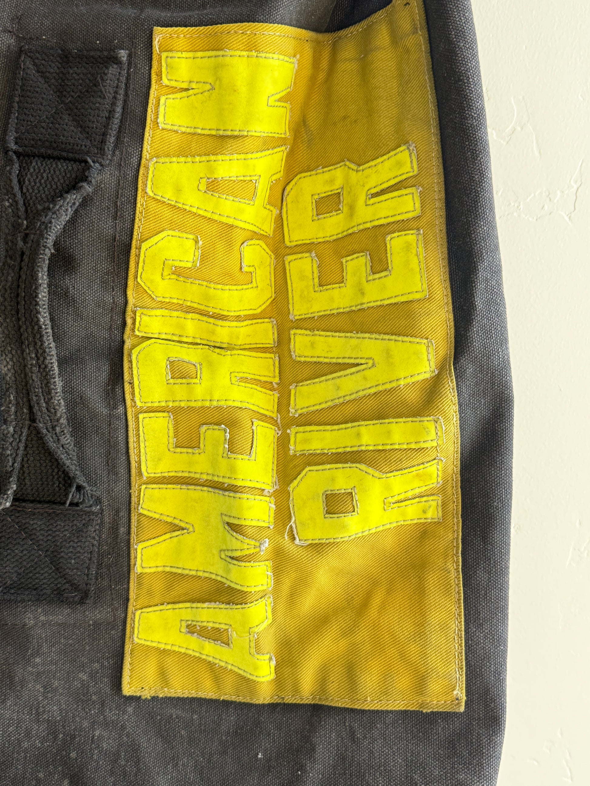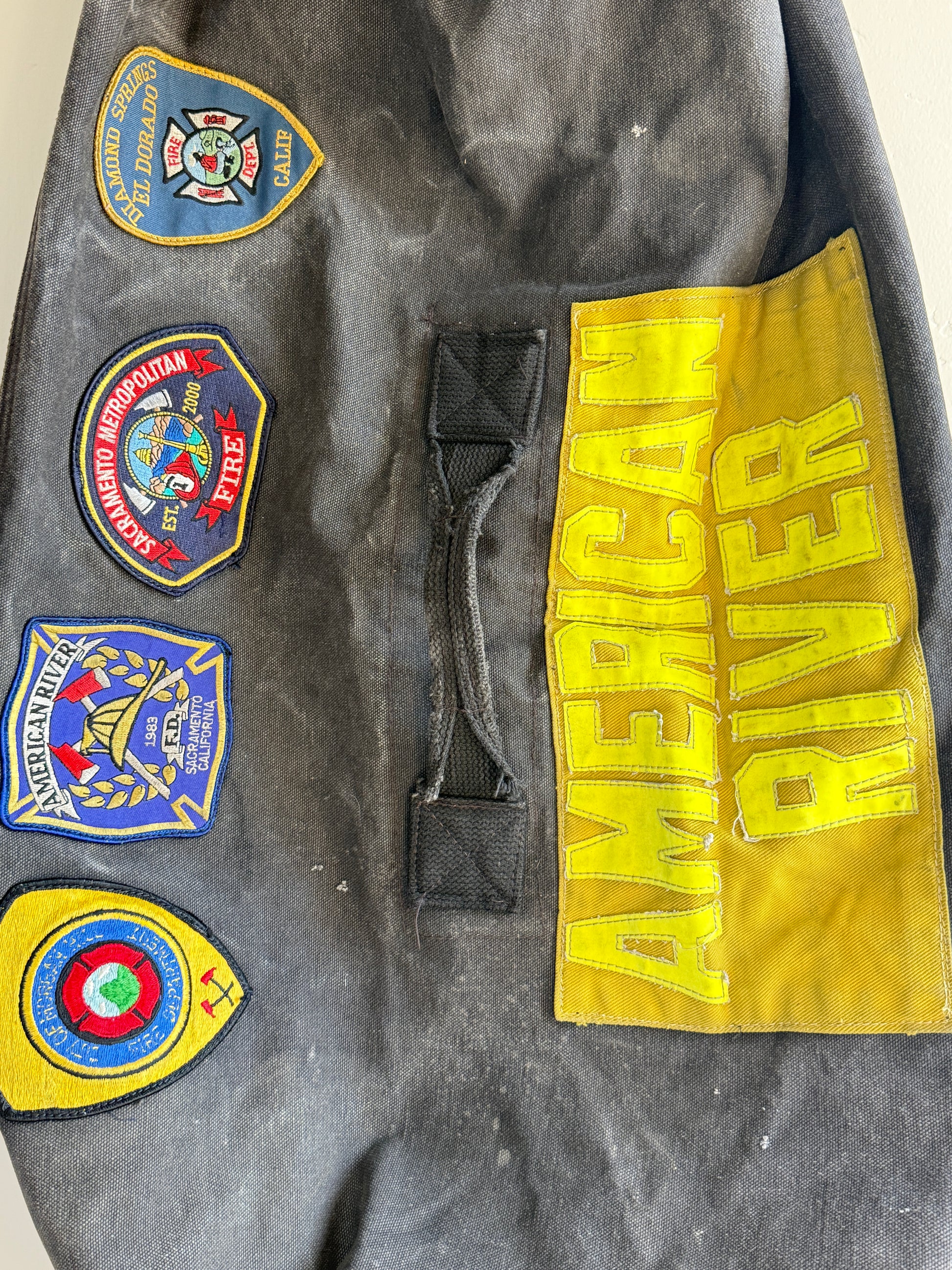 Authentic details: Four original Fire Department patches and a large reflective AMERICAN RIVER patch.