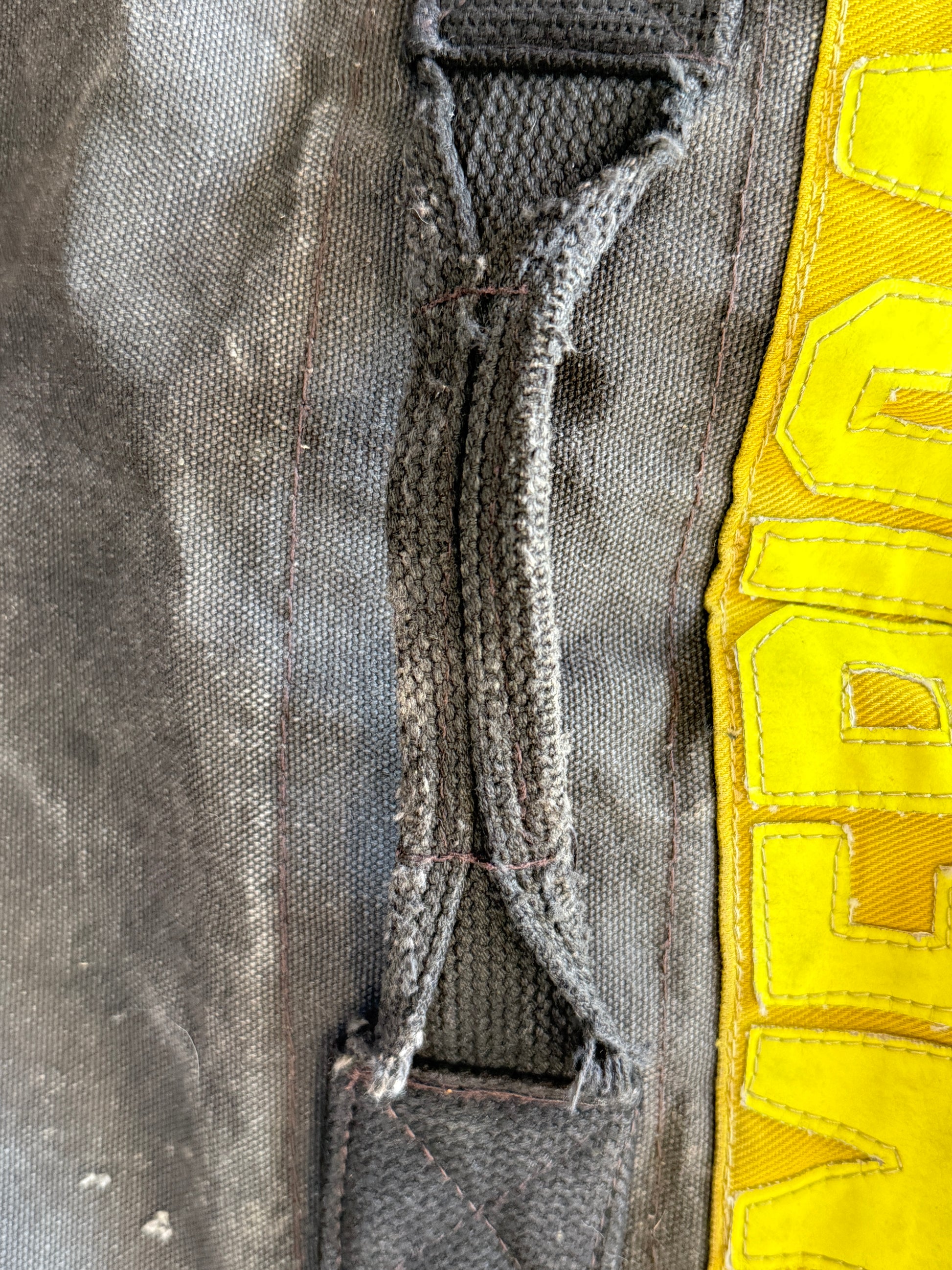 This oversized vintage canvas bag is rugged, durable, and full of authentic character. Naturally distressed with fading, fraying, tiny holes, and tears, it’s the kind of piece that tells a story and is ready for many more adventures.