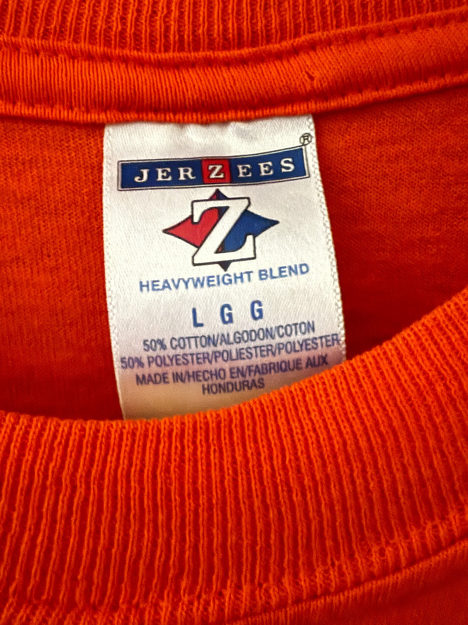 Bold and bright vintage tee from Sac Brew. Construction orange with black block lettering: "SAC BREW DELIVERY GUY."