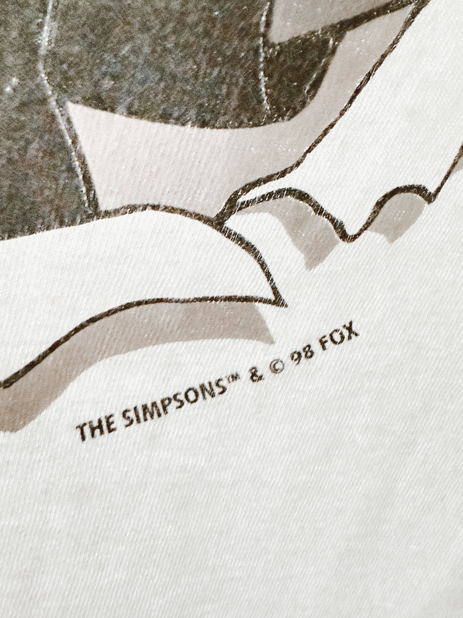 Original 1990s promo graphic tee featuring Bart Simpson with his classic catchphrase, “Nobody better lay a finger on my Butterfinger.” Printed on a Signal Sport Mega Cotton tee. Single stitch hems. Fabric is soft, worn-in, and full of nostalgic charm. A true pop culture collectible.