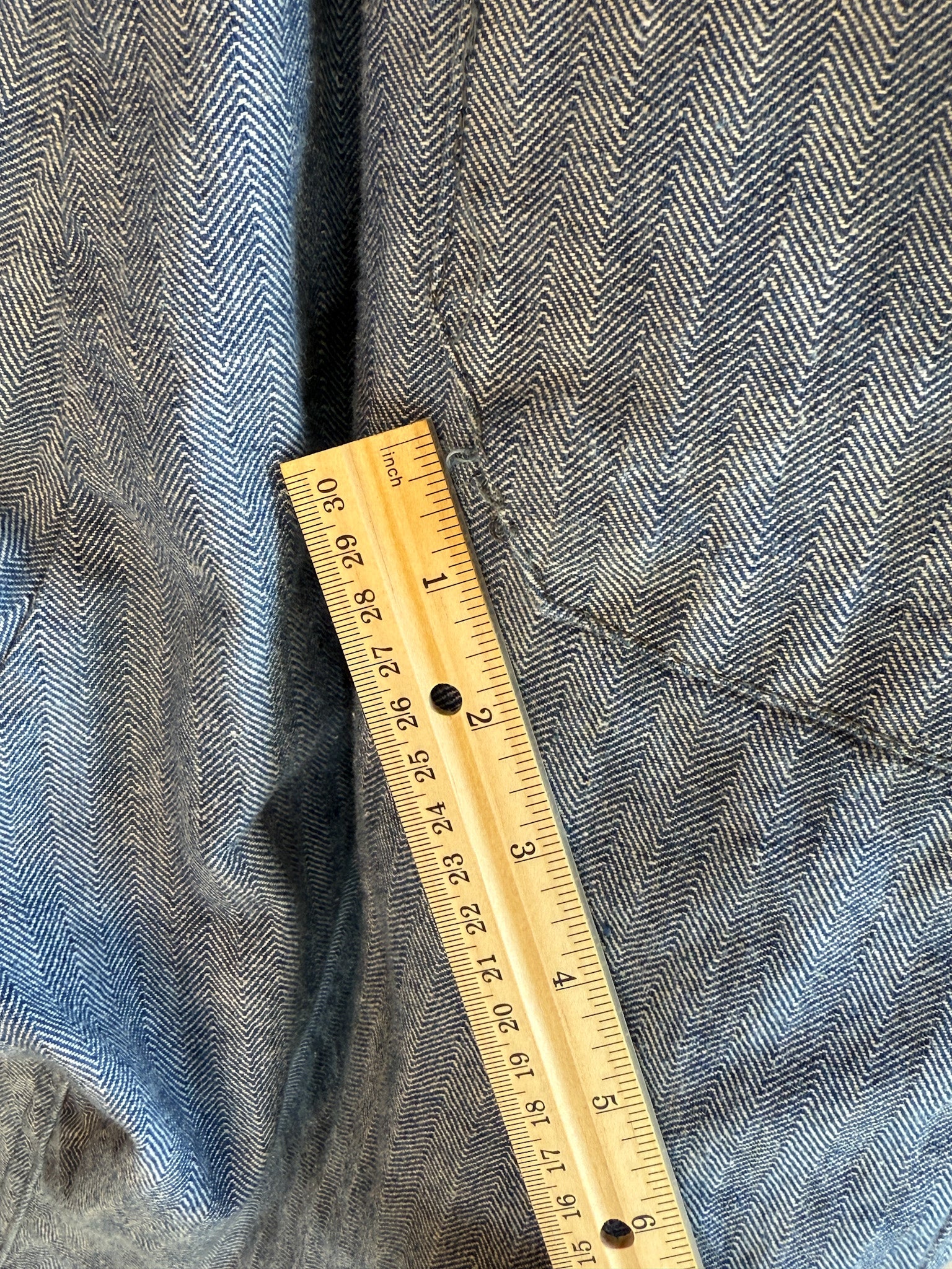 Very good vintage condition with minor distressing that adds to its story—small hole in right leg and a tiny tear at the edge of one pocket (see photos).