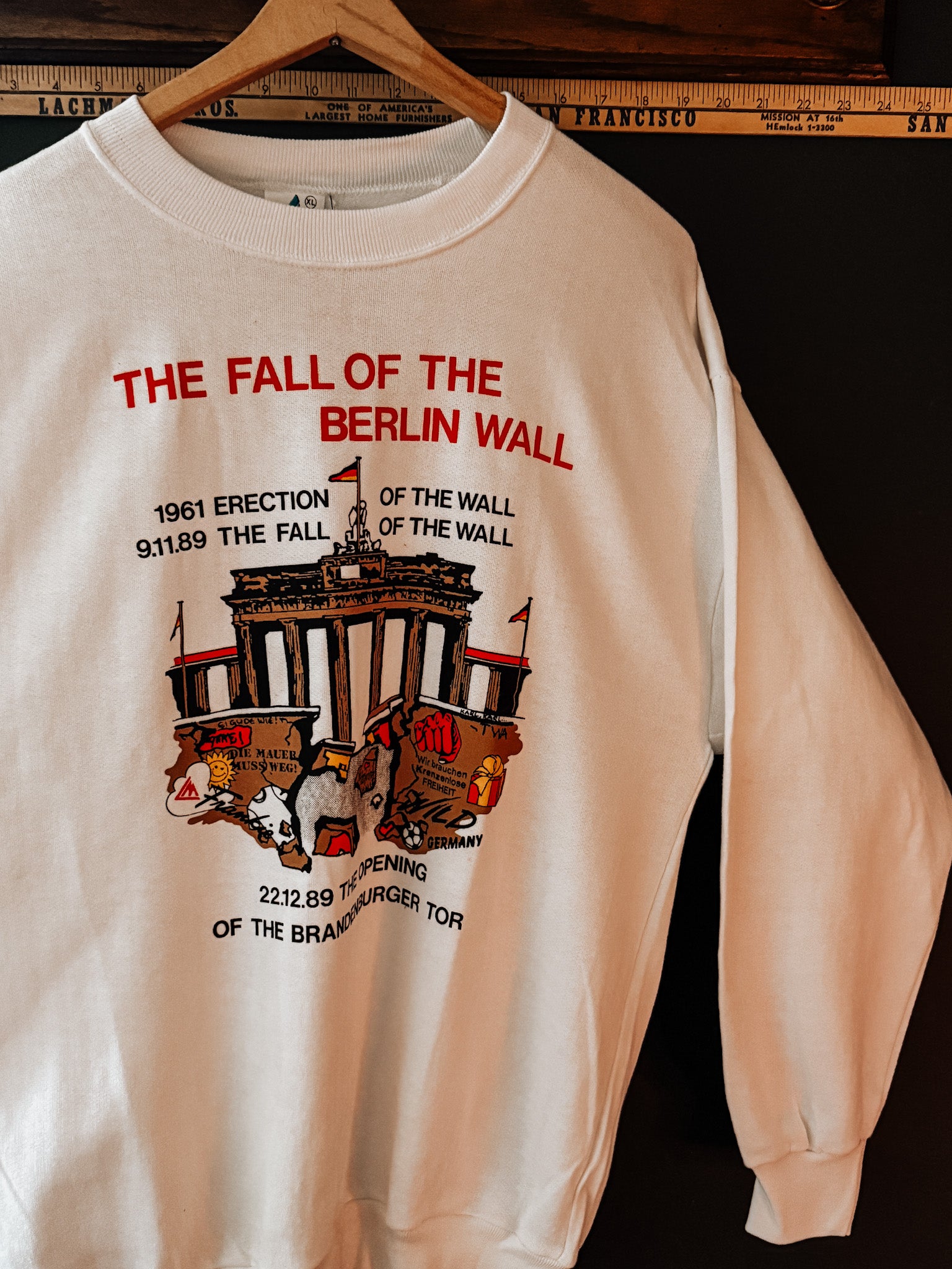 This vintage sweatshirt commemorates a pivotal moment history—the fall of the Berlin Wall. With bold graphics and a clean design this oversized XL sweatshirt is soft and comfortable.