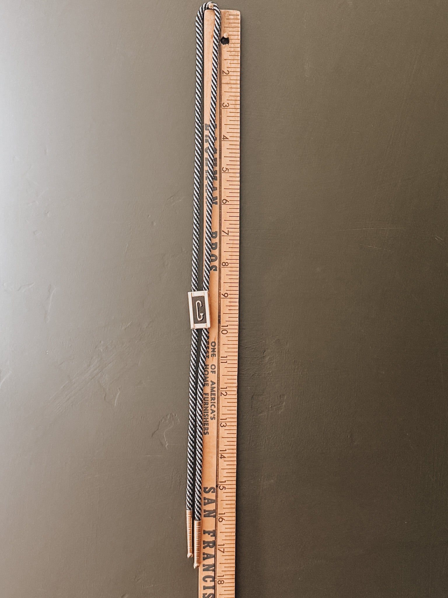 A bold little piece with a whole lot of character—this vintage bolo tie features a chunky gold-tone “G” emblem on a twisted navy and sky-blue cord. Finished with classic gold-tone metal tips, it's a sharp nod to western wear.
