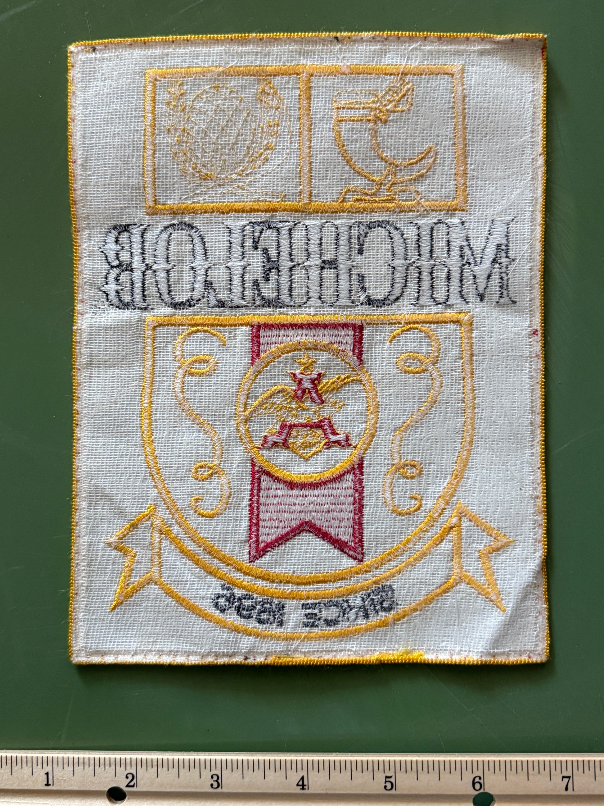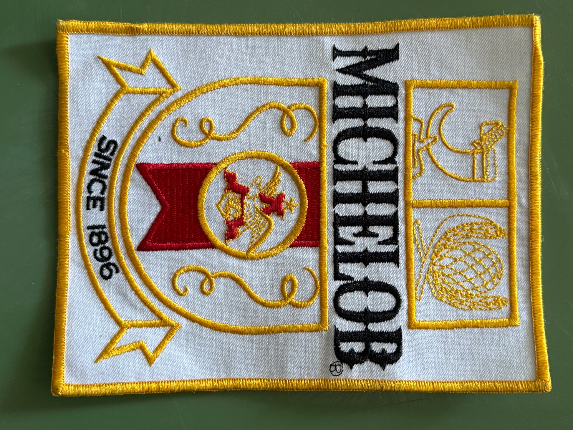 This vintage Michelob embroidered stitch-on patch is a bold collectible piece for beer lovers, vintage enthusiasts, and retro fashion fans. Featuring the classic Michelob crest with gold embroidery, a red banner, and the “Since 1896” detail, this large patch makes a statement on denim jackets, workwear, vests, or display collections.