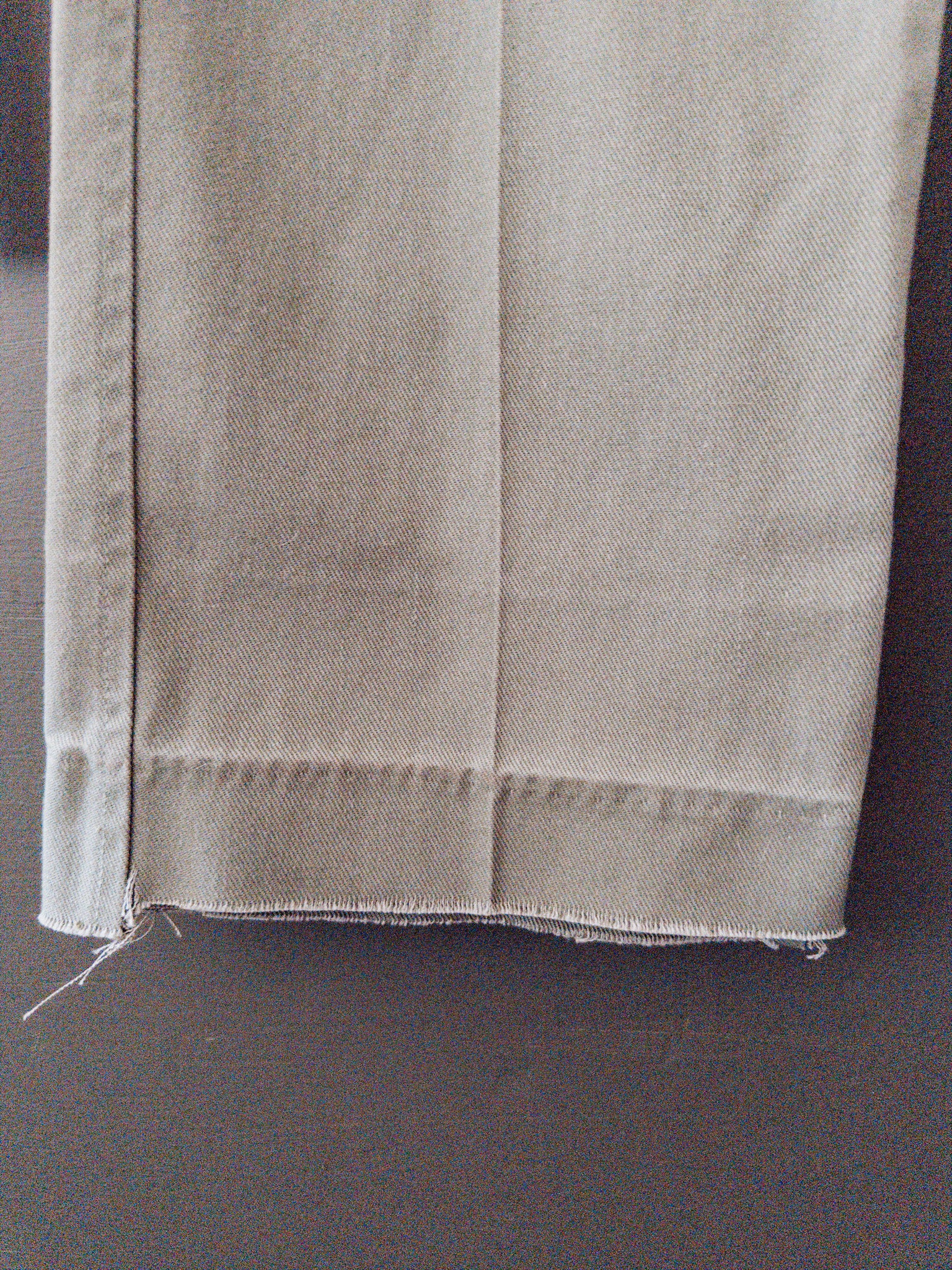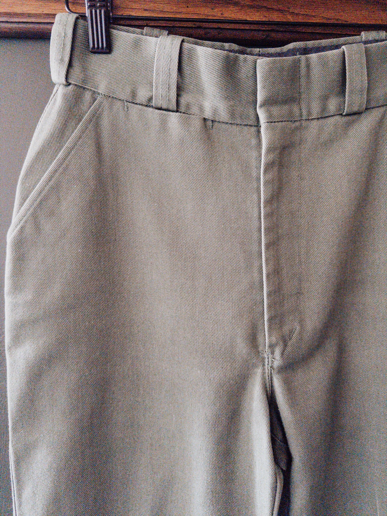 Vintage Lioness work pants in a rugged olive green with major forest service energy—these are the kind of pants built for hard work but worn for pure style. The fit is structured yet easy, with a high 12.5” rise and a flattering straight leg. The cuff hem has been deconstructed for that perfectly frayed edge