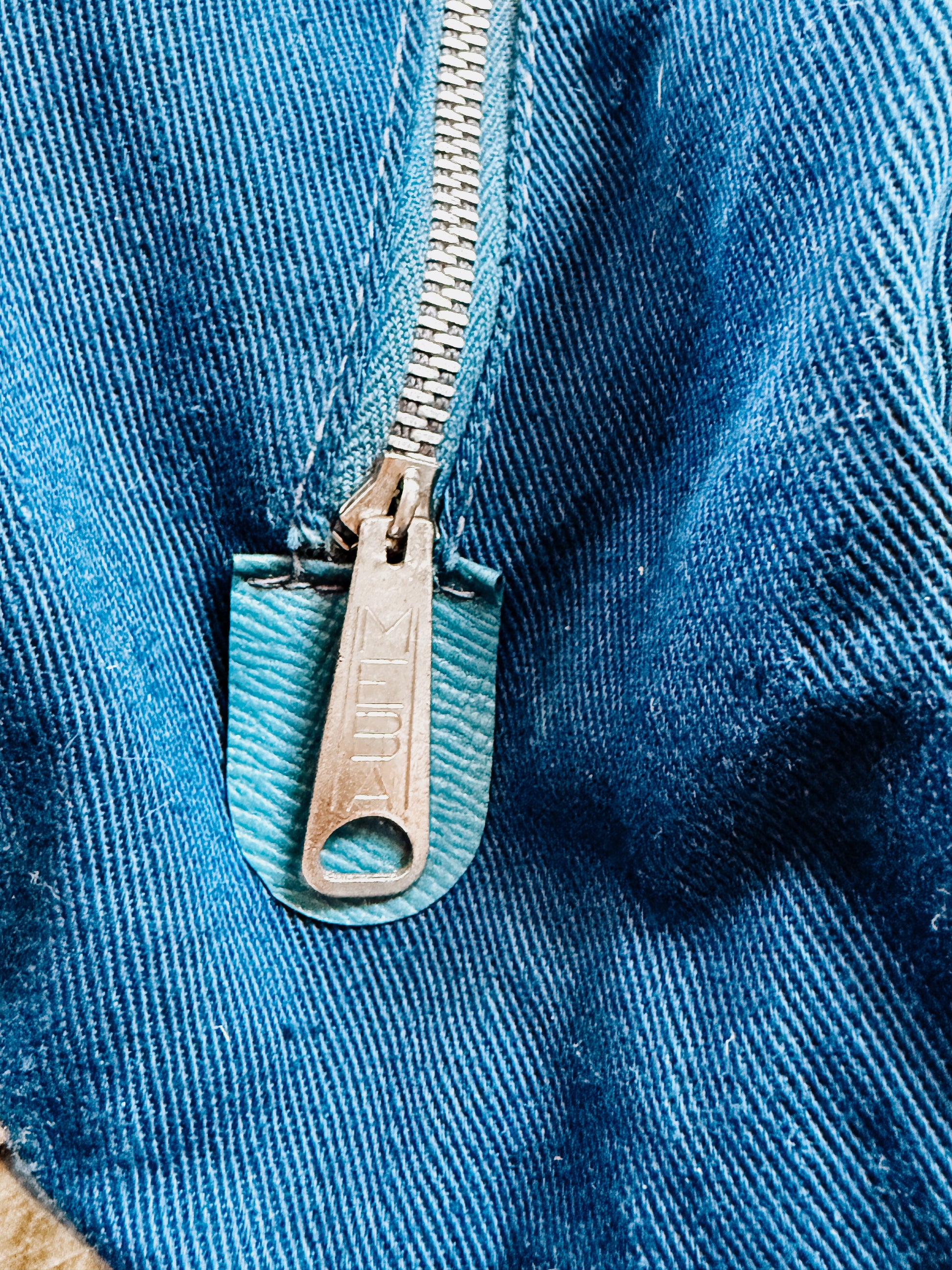 Condition: Pre-loved, vintage character—working zipper, functional structure. Minor cosmetic wear (stains, interior name) adds to its storied personality.