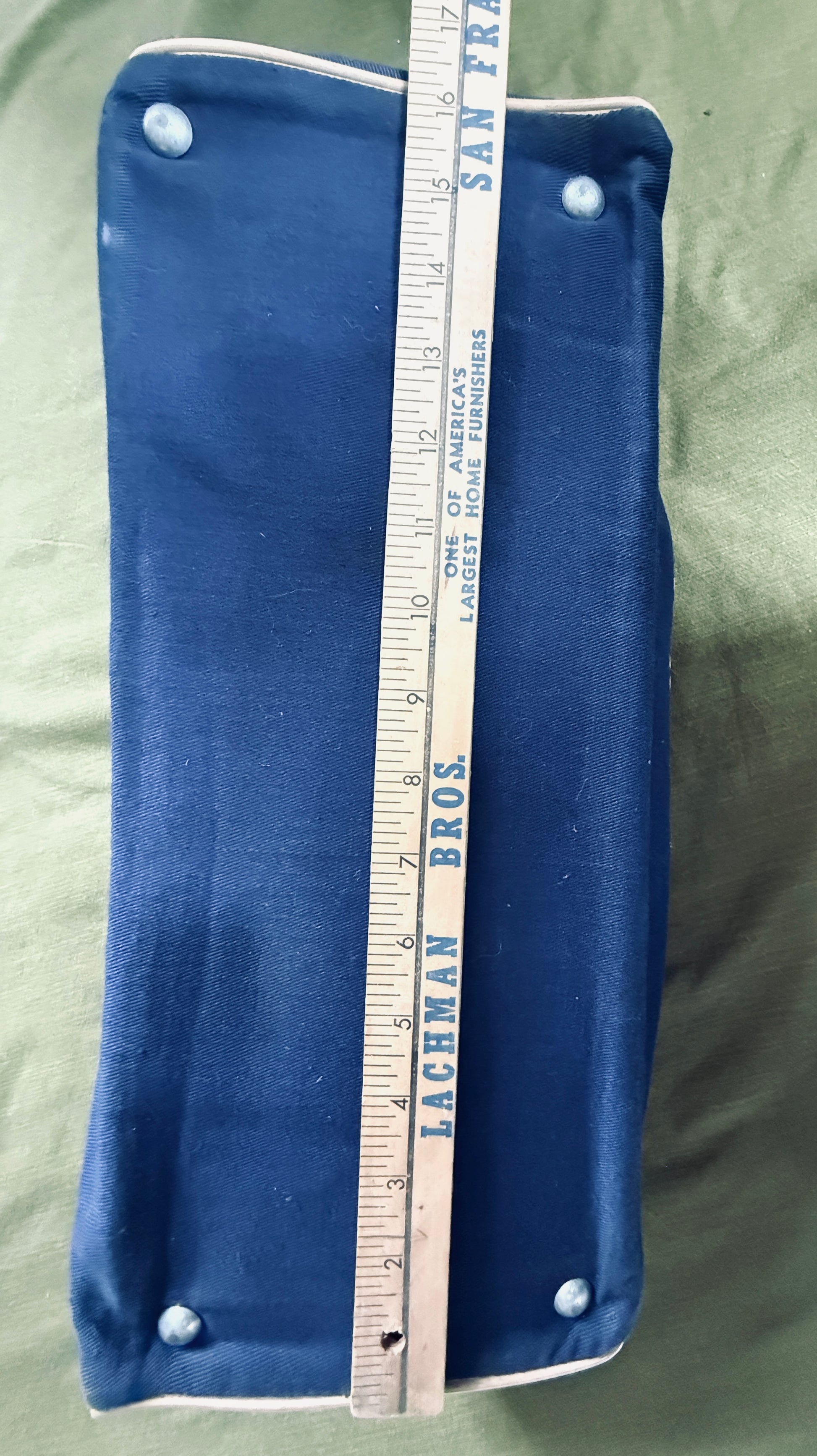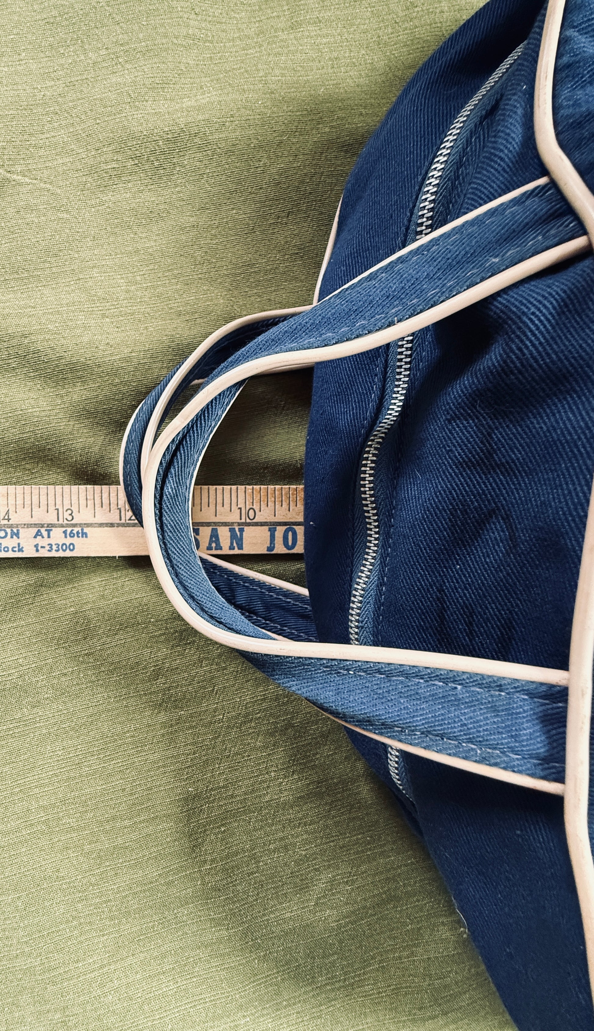 This United Airlines vintage travel bag blends utility with nostalgia—Accented with white/cream piping trim, and stamped with that classic United logo. The zipper still glides, the bottom retains its original shape thanks to the intact cardboard insert, and despite some stains and a handwritten name, it’s bursting with character and fully functional as a purse or carry-all.