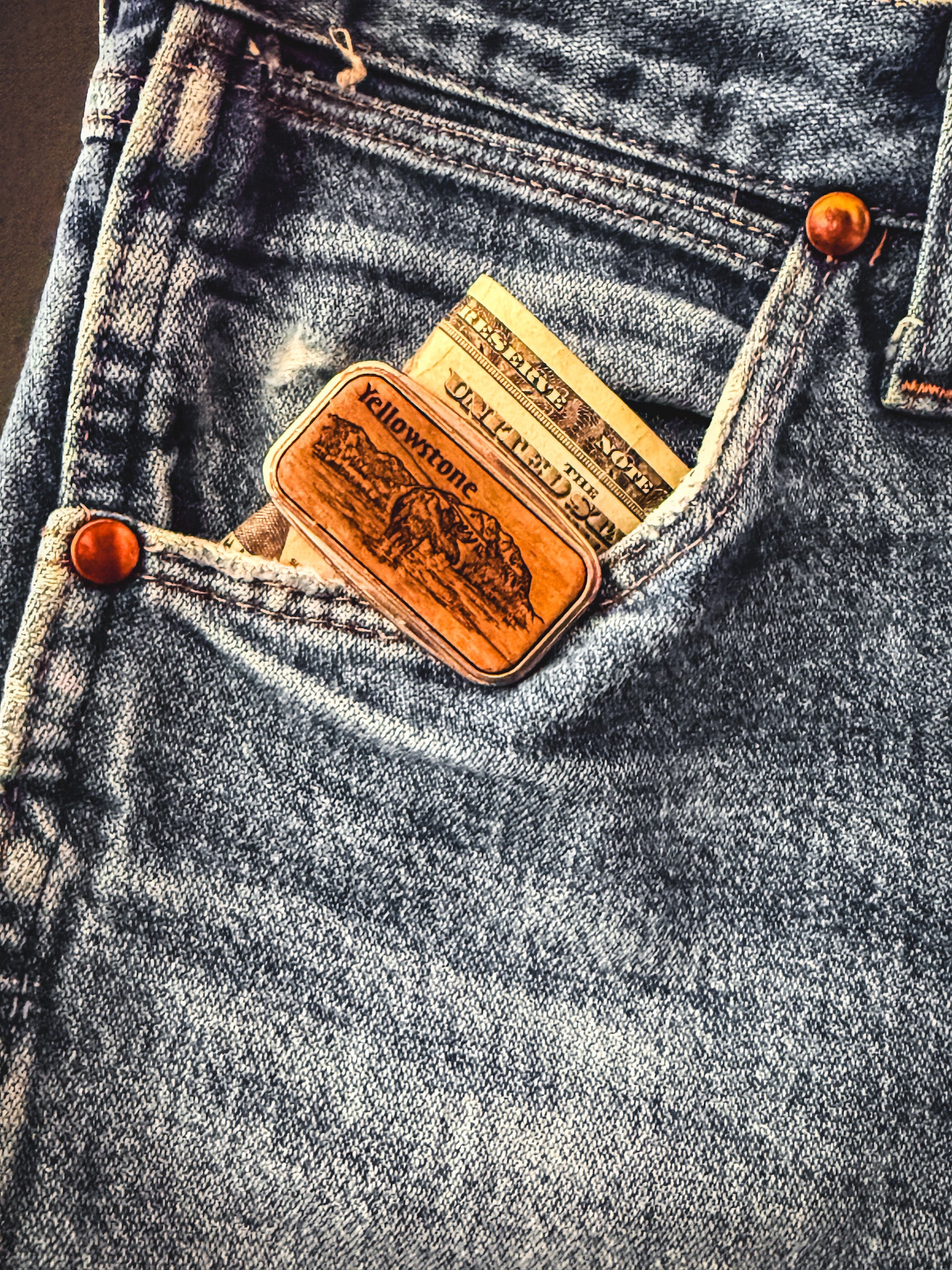 Yellowstone Money Clip with Wood Inlay | Vintage